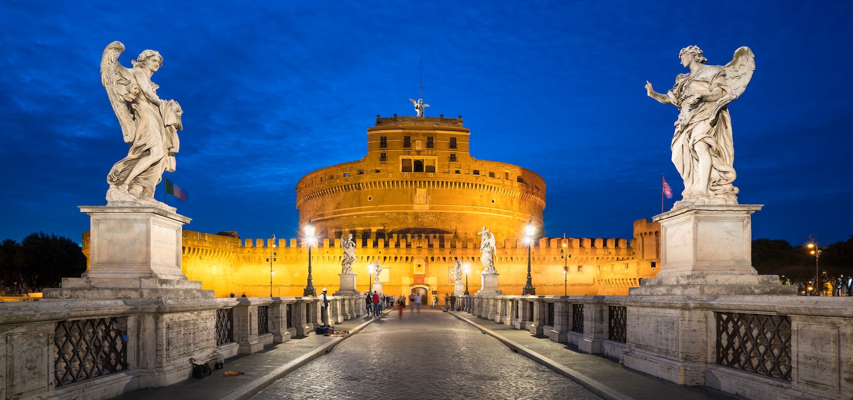 Secular culturistas continue to be fascinated by the Catholic Church—or at least by its external trappings. The Italian fashion design firm Dolce & Gabbana’s recent show in Rome for its men’s line, Alta Sartoria, was entirely devoted to riffs on Catholic clerical garments of the most sumptuous sort, heavy with brocade, gold-thread trim, and bejeweled crosses. Domenico Dolce and Stefano Gabbana, the forty-year-old firm’s founders, used as their outdoor runway the most iconically Catholic site in Rome outside the walls of Vatican City: the Ponte Sant’Angelo leading across the Tiber from the Castel Sant’Angelo, originally the tomb of Emperor Hadrian, then a papal fortress, and now a museum. The bridge’s marble parapets feature magnificent Baroque statues of Sts. Peter and Paul, along with ten angels, each holding an instrument of Christ’s passion. It was one of Gian Lorenzo Bernini’s last sculptural projects before his death in 1680.