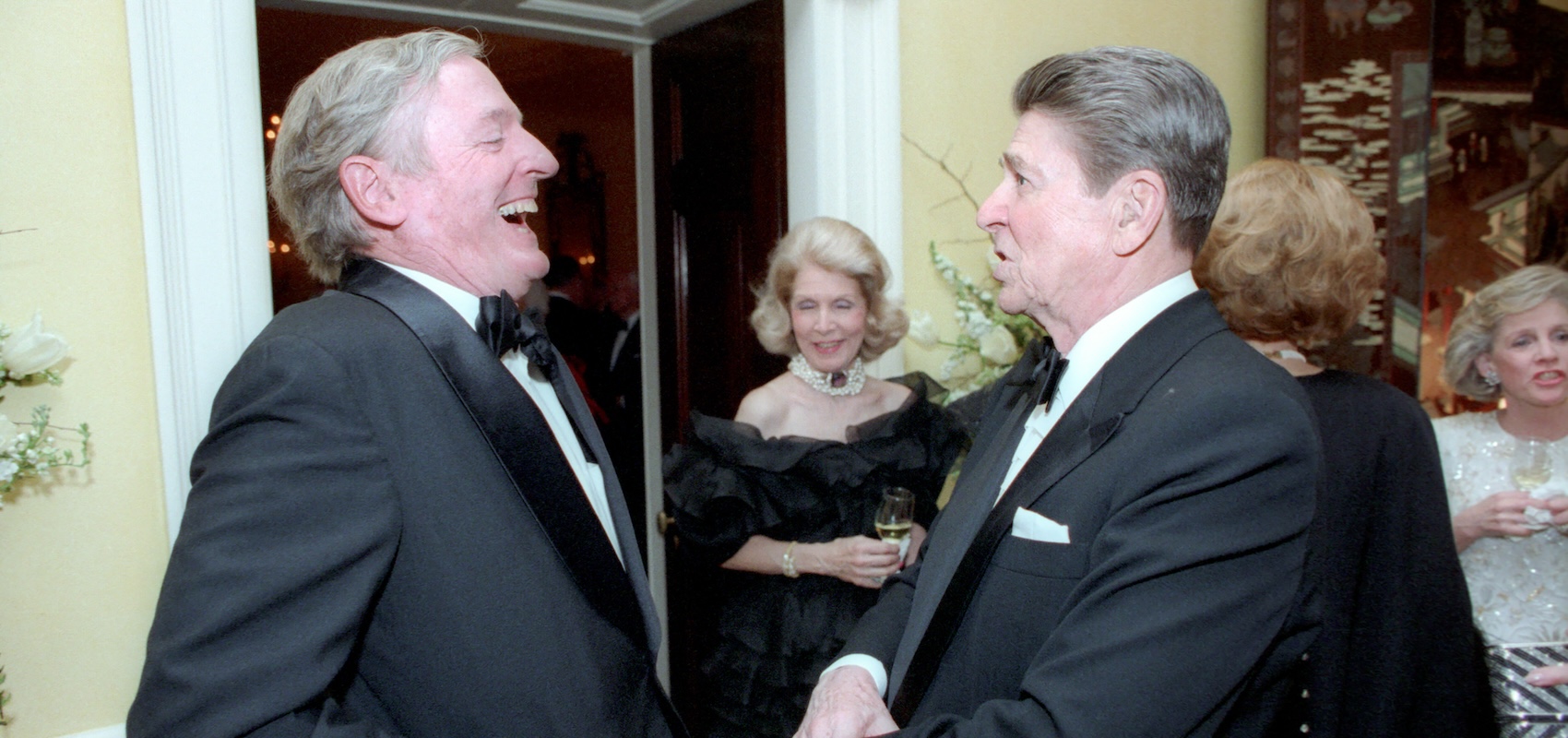 Buckley lampooned liberal pieties in a syndicated column that was rambling, recondite, and allusive. He wrote of Hunter S. Thompson: “What emerges with a most awful vividness from this collection, presented as a chrestomathy by the most highly accredited bard of the period, is a very nearly unrelieved distemper, and this, along with the tintinnabulary drugs, is so markedly the Sign of Thompson that to fail to give it due emphasis would be to fail to remark Jimmy Durante’s nose.” Those who flocked to Buckley’s speeches would hear an outlandish Oxonian drawl, which he claimed to have picked up in a year of English public school before the war. His project was not just ideological but social: Buckley aimed to purge his movement of the losers who cost it prestige and (therefore) adherents, cutting loose the anti-Semites of the late-stage American Mercury and the conspiracy theorists of the John Birch Society. A run for mayor of New York in 1965 brought him to the attention of television producers, who would run his pioneering talk show Firing Line for four decades. Buckley counted Henry Kissinger and Ronald Reagan among his friends—one could even call them protégés. Only with Reagan’s rise to the presidency was Buckley eclipsed as the leader of the whole conservative movement.